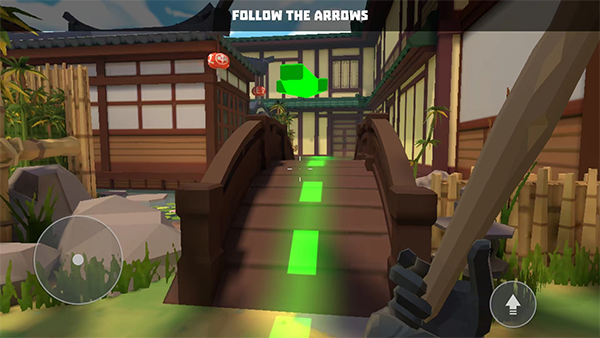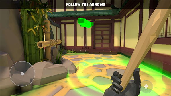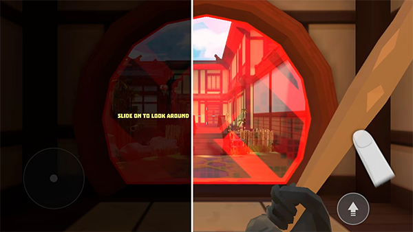 2、游戏控制分为左右两块区域,左边控制角色移动,右边控制视角。