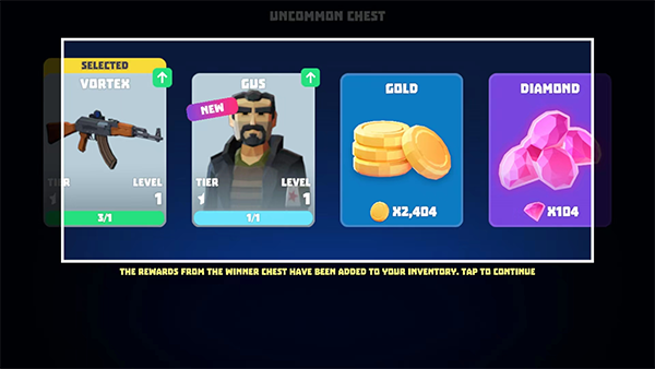 9、游戏胜利后可以获得武器碎片、角色、金币和钻石等游戏奖励。