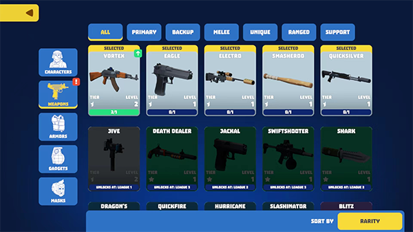 10、游戏中还有丰富的武器装备和角色等待玩家解锁升级,以上就是多边形竞技场最新版的玩法了。