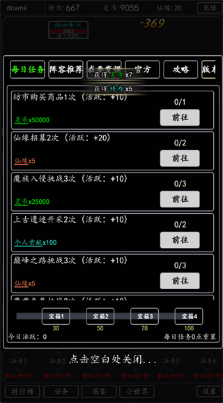 优先完成活跃度任务,获取灵币、仙缘和个人贡献。灵币用于升级,仙缘用于伙伴招募,个人贡献可兑换稀有道具。
