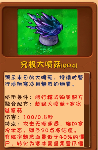 2、加入了如终极魅惑菇、究极幻灭大喷菇、雪球冰车僵尸等强力且有趣的新植物以及僵尸。