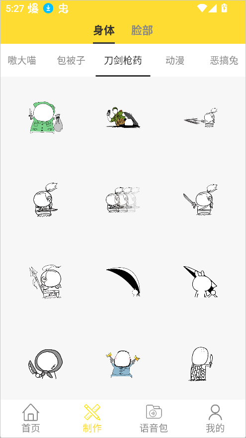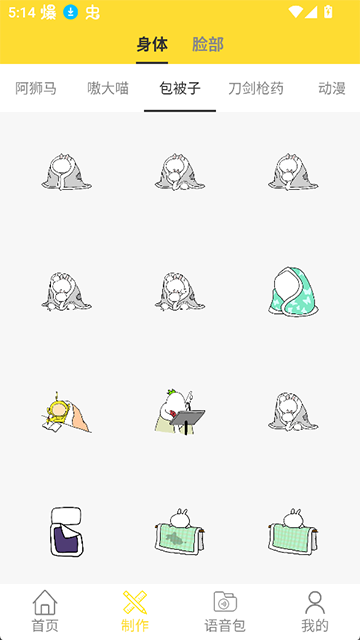 除此之外,App还提供了查看其他用户热门作品的功能,参与点赞、评论或表情PK,随时获取创意灵感,提升斗图技能和社交乐趣。对于新手来说,制作表情包也非常简单:进入软件后点击下方导航栏的“制作”,选择身体和脸部自定义功能,根据需求调整细节,然后添加文字等元素,最后保存即可。