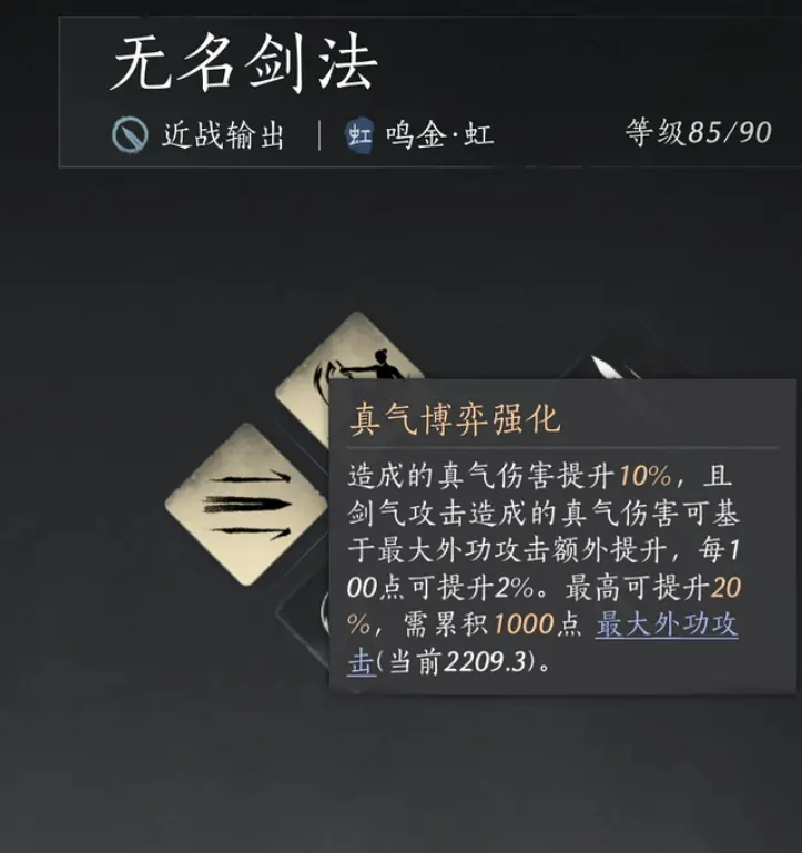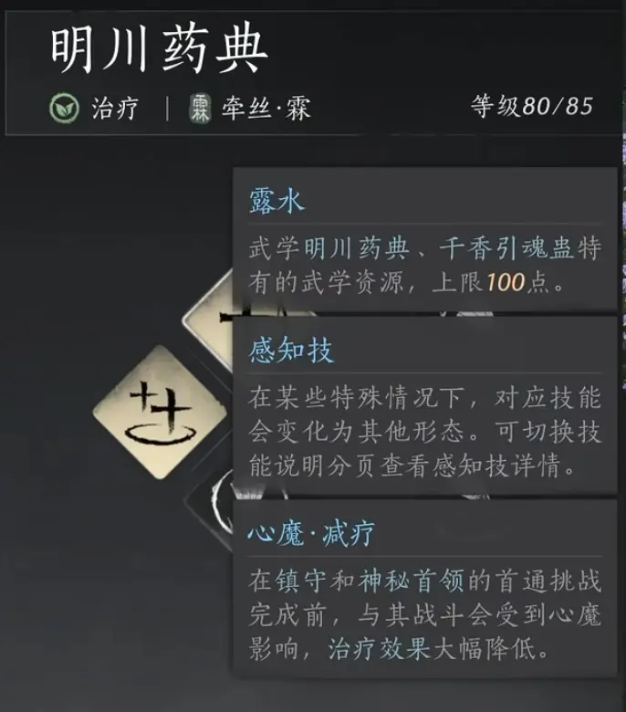 而在武器选择上,直接选择无名剑法,副武器可以选择扇子明川药典,可以帮助玩家回血,也可以选择嗟夫刀法,在面对有减疗的战斗中会有奇效,因为他可以套盾。