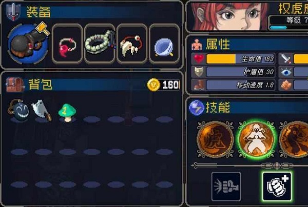 道具分成普通和高阶两种品质,而高阶道具可以通过普通道具合成获得。每一个英雄最多能装备四个道具,剩下的道具放置在背包里,也可以随时更换,当然不可以在战斗状态替换。