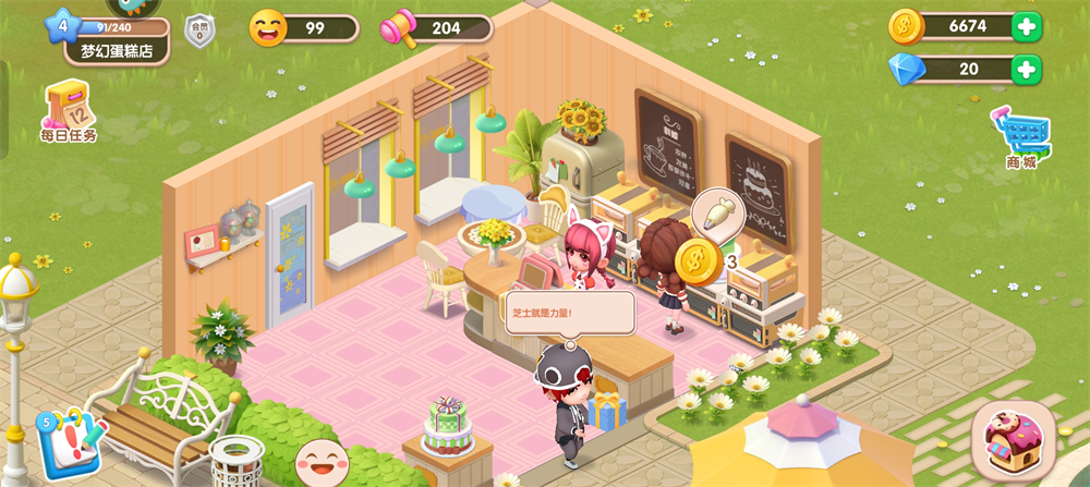 最近的更新还优化了程序性能,游戏运行更加流畅。总的来说,《梦幻蛋糕店破解版》不仅是一款休闲娱乐的游戏,更是一种回忆青春、享受生活的方式。如果你喜欢甜点和模拟经营,不妨试试这款充满温馨感的手游吧!
