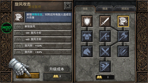 打开技能树界面,消耗硬币或技能书升级技能,如“旋风攻击”等。使用破解版内置菜单,可直接解锁高等级技能,快速增强战斗力。