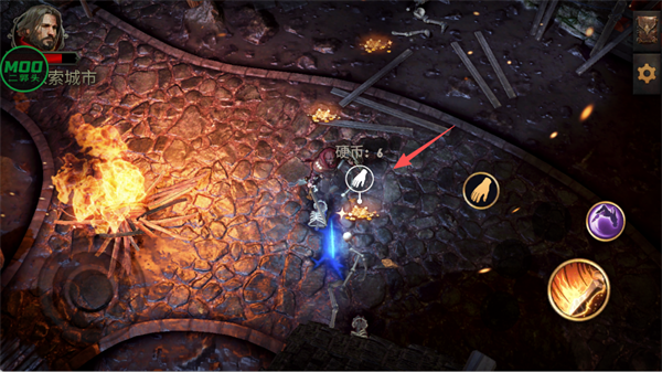 击败敌人后,地面会掉落硬币,靠近后点击“手掌”图标拾取,这些硬币是后续技能升级和角色强化的重要资源。