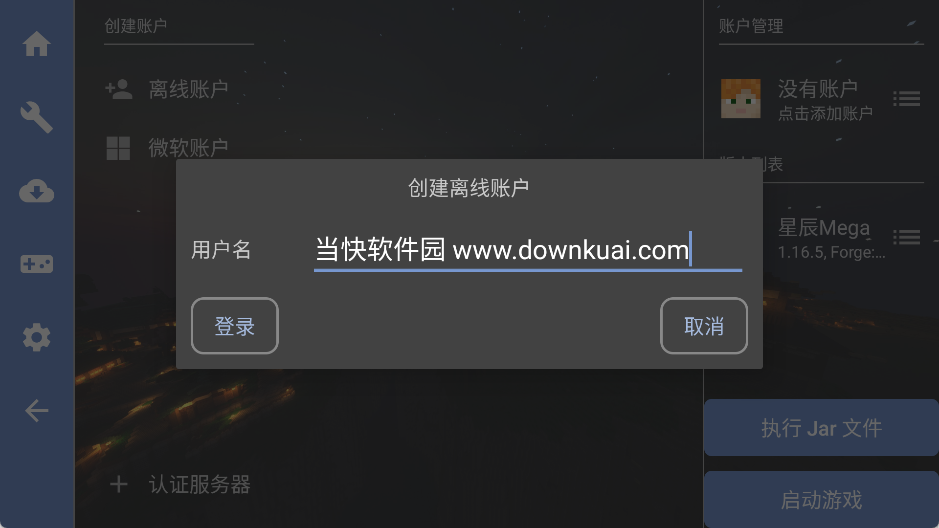 1、启动我的世界星辰Mega宝可梦手机版,进入后先完成账号创建流程;