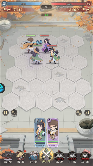 游戏采用自走棋战斗玩法,优先升级前排侠客扛伤,后排放输出位;技能卡攒到关键时机再释放。