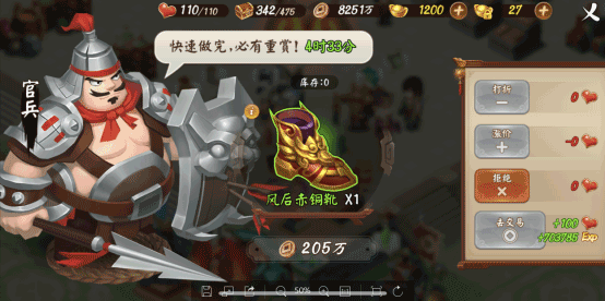 每天都有特殊的NPC官兵进入你的工坊,按时完成需求可获得大量经验和铜钱。