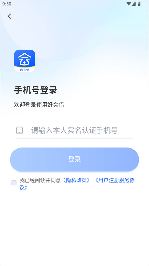 1、打开好会借官方正版,使用手机号注册登录;