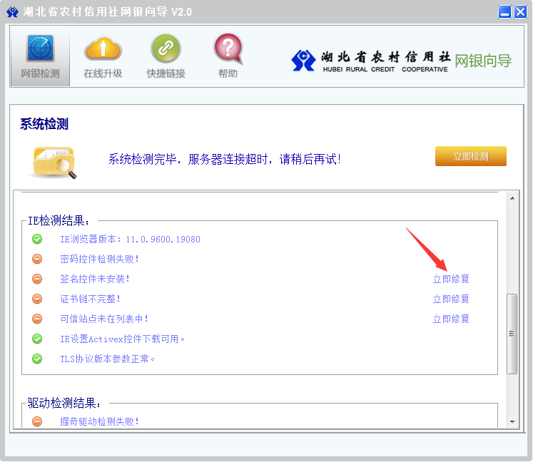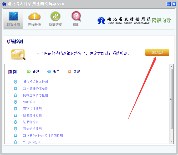 Q2:湖北农村信用社网上银行向导的系统检测能做什么?