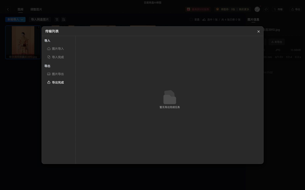 导入您需要修的图片,支持导入本地电脑、百度网盘中的图片。