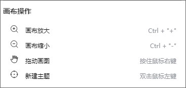 画布默认的缩放比例是100%,如果想要浏览思维导图的全貌,或是想要查看其中的某一个节点,我们就需要对画布进行缩放。来到作图界面的左下角,在导航栏中点击【+】、【-】两个按钮即可对画布进行缩放;点击按钮中间的数字,可快速调节画布大小。