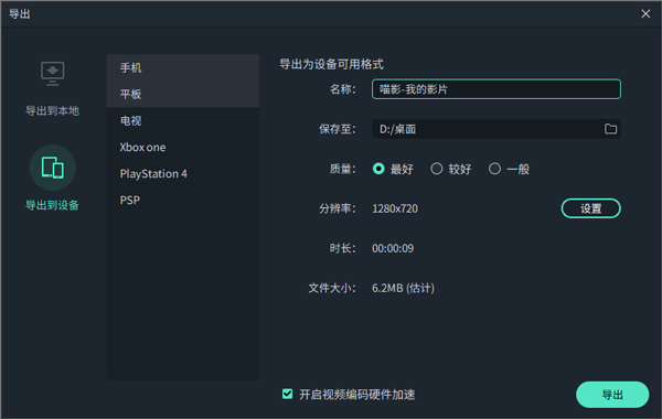 2、将视频导出到设备