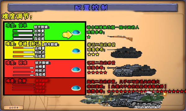 2、点击配置设置,玩家可调节游戏难度;