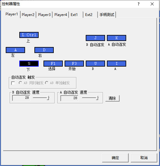 1P: 方向:W、S、A、D 选择:F1 开始:F3 单发:U、Y 连发:J、H