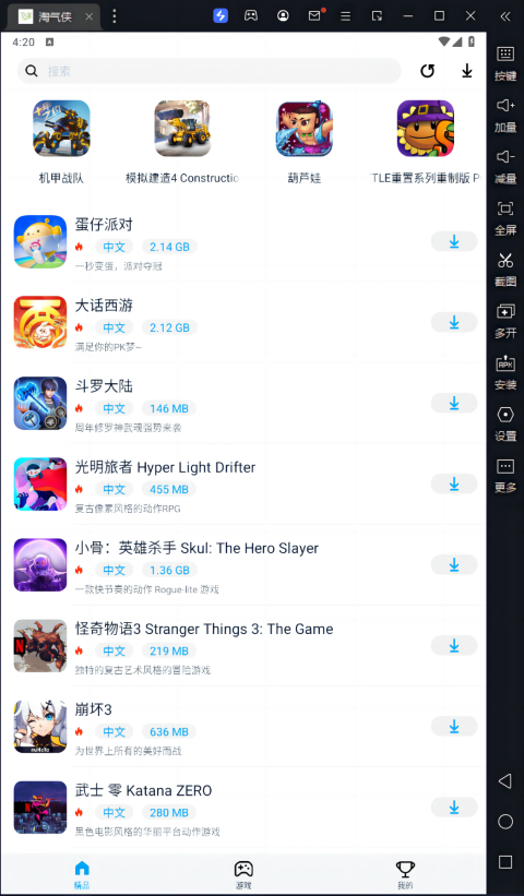 淘气侠电脑版这东西说白了就是个基于安卓模拟器的游戏盒子,专门给咱们这些爱玩游戏的人准备的,它背后是山西焱金科技搞的,里面资源真的多到爆,不管你是喜欢角色扮演、动作闯关还是策略塔防,基本上你想玩的都能搜到,这就省得咱们到处乱找资源了,我个人觉得这种整合好的软件特别省心,毕竟谁也不想浪费时间在搜游戏上对吧。而且这软件界面挺干净的,没啥烦人的广告,操作也简单,最让我觉得方便的是它内置了云手机功能,不用下载就能直接玩,这点真的很适合我这种手机内存老是不够用的人,而且它还能自动更新游戏,利用空闲时间一键搞定,简直不要太爽。另外它每个游戏都有评论区,咱们可以在里面跟其他玩家吹吹牛、交流下心得,这种互动感挺好的。软件特色方面,下载速度快不用死等,游戏种类多更新也及时,安装还自动适配机型,省时省心。那个火爆论坛和大神攻略更是亮点,想吐槽或者学技术都能找到地儿。至于优势嘛,它聚合了各种评测和资讯,安全又便捷,还有资深玩家推荐游戏,能让你第一时间发现全球的好手游,特别是日韩美那些排行榜更新很及时。最后那个交流社区氛围也不错,大家都在这分享高质量的游戏体验。总之这软件功能挺全的,v2.0.8版本还修了一些bug,用起来更顺手了,真心推荐喜欢玩游戏的朋友试试看。