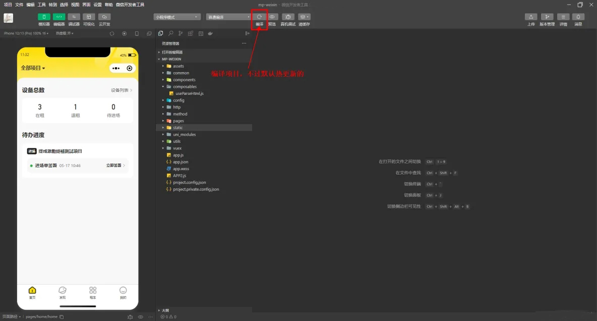 7、后续改完bug,开发再给你发包后,点击一下上方的【编译】就可以了,