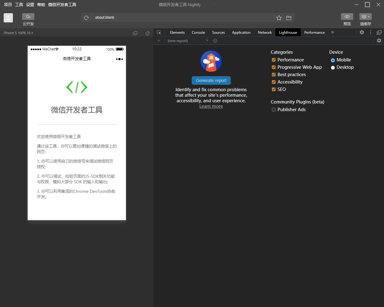 1、安装并打开本站下载的微信开发者工具开发版,可看到支持小程序和网页项目,