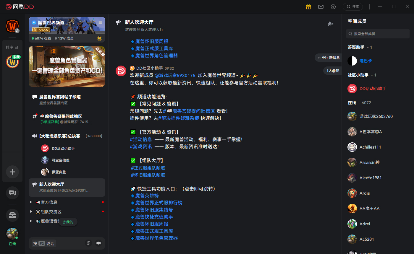 4、点击魔兽世界频道:可以看到各种活动信息,dd活动小助手等。