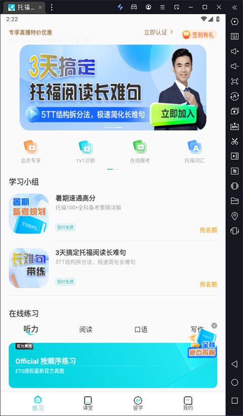 为你提供听说读写等全面的练习功能,使用手机即能备考,告别无法离开电脑的备考时代。做题数据还能与网站进行同步,让你随时随地轻松备考。