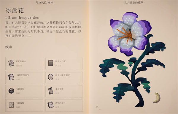 3、环境探索:通过探索庄园的不同区域(如温室、图书馆、花园、牧师洞等),逐步解锁新区域。每个区域的植物线索通常与该区域的环境和历史背景相关。