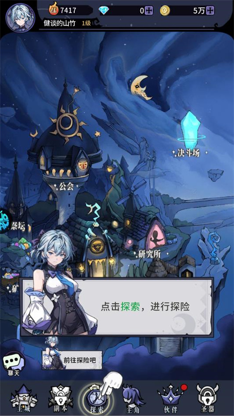 1、进入东方奇缘游戏后,点击探索,开始探险挑战。