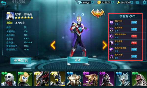 点评:迪迦奥特曼虽然只是史诗级英雄,在成长性方面不如传说英雄来的恐怖,但是实用性绝对是毫不逊色传说级英雄的,毕竟迪迦可是唯一一个可以通过切换皮肤改变英雄属性的存在,所以玩家在培养迪迦的时候就可以通过切换迪迦的皮肤而调整迪迦的英雄属性,可以说这样属性让迪迦可以在更多时候适应更多的战场,起到更大的作用!