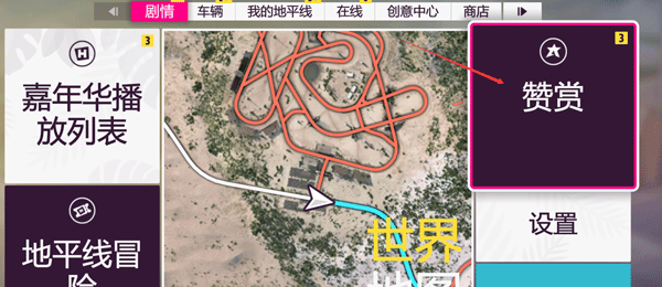 选完车之后就走剧情,会解锁几个赛事,你可以选择跑赛事,也可以选择跑剧情 (推荐跑剧情,这样赞赏加的快),赞赏可以奖励车,衣服等,值得一提的是,到25万赞赏就可以进入赞赏名人堂,就可以自由游戏,不用跑剧情了