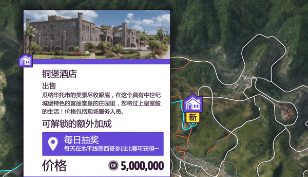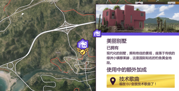 2、美丽别墅,游戏内第一个解锁的,免费。奖励是 “电台会播放技术歌曲” 有助于快速升级并获取车辆精通点数。