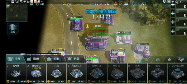 解锁建筑:施工工地上限2,突击车工厂上限2,特种车工厂上限2,空军工厂上限2,船坞上限2,基础防御塔上限3,炮塔上限2,防空塔上限4,海上防御塔上限3