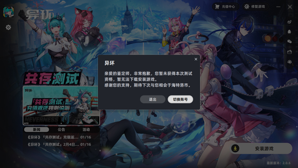 4、如未获取资格则会提示无法下载安装游戏,如有测试资格,下载安装后启动游戏注册进入即可。