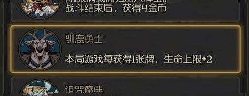 驯鹿勇士:本局游戏每获得1张牌,生命上限+2