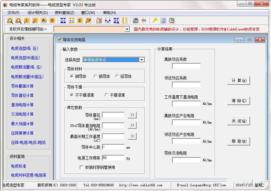 交流电阻的手工计算相当复杂,本软件可迅速准确地计算出电缆的交流电阻,以便设计参考。