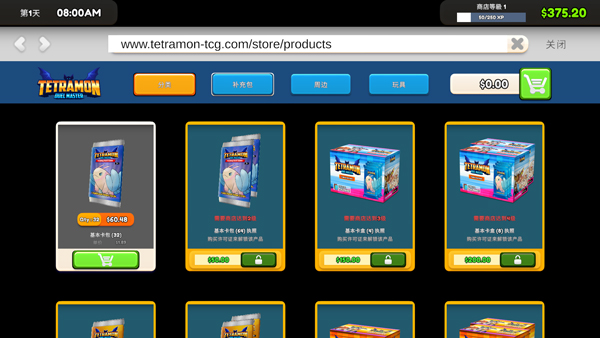 5、玩家可选择要购买的卡包,接着卡牌包会送到店铺门口;