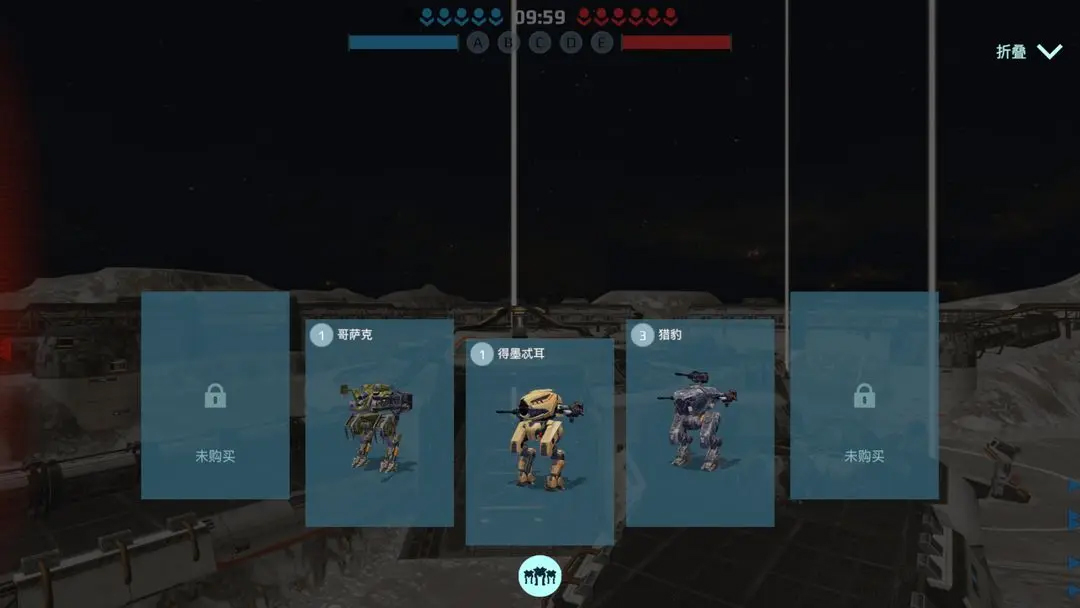 占据主界面C位的是现有并出战状态下的机甲,指挥官可以点击机甲进入机库,进行更换、升级以及替换装备等操作