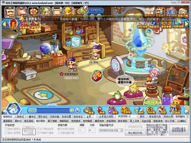 一键取物、一键清理垃圾、农场送玩具、一键农场操作、一键刷历练值、一键刷通天塔、一键挖宝、一键炼丹、一键呱呱学习、一键航海、一键宠物特训、一键发现之旅