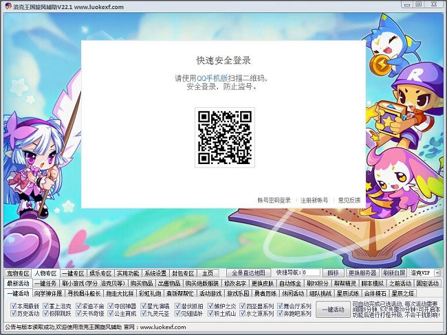 刷小游戏(学分 洛克币 体能 智慧魅力)、购买物品、出售物品、购买绝版服装、修改名字、更换皮肤表情、自动炼金、刷PK积分、与帮帮精灵对话、自定义脚本模拟