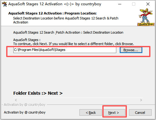 4、选择安装位置(这里选择aquasoft stages软件的安装位置),然后Next;