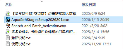 1、在本站下载解压,得到aquasoft stages安装程序和激活补丁;