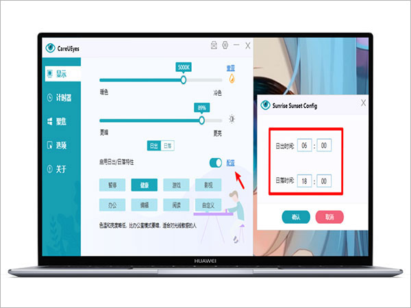 还可根据日出和日落的时间自动切换,非常方便;