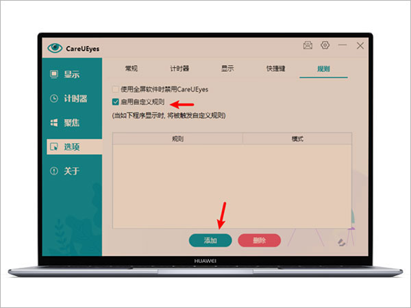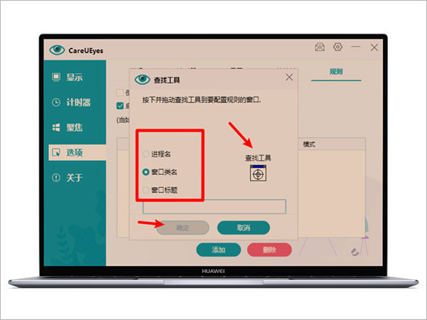 勾选住启用自定义规则,然后点击下方添加按钮,弹出对话框后,选择窗口类名;