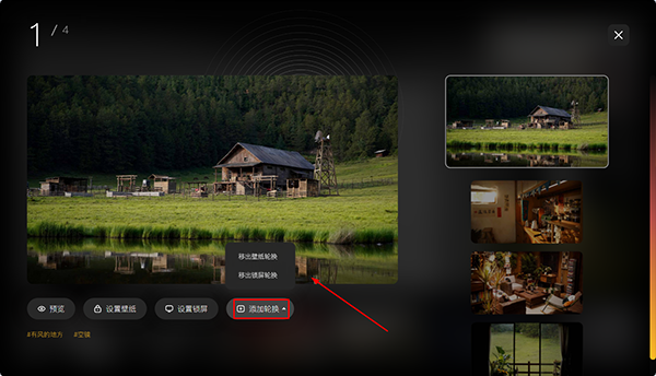 2、选中喜欢的壁纸,在下方将其【添加轮换】,还可以自行选择是【锁屏轮换】或是【壁纸轮换】;