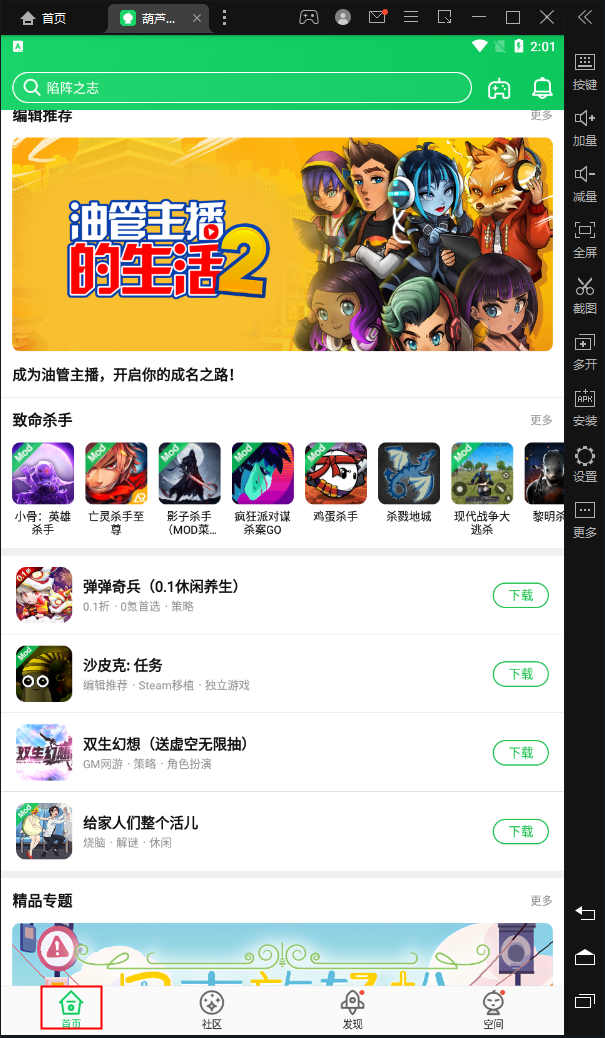 在基本功能上,首页提供大量经过评测的游戏下载,社区允许用户与其他玩家互动,发现页面还有各种限定装扮和福利兑换。空间功能支持绑定社交账号,方便玩家随时随地分享内容。