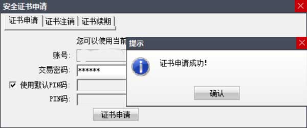 (4)证书申请成功后,回主登录界面,输入账号、密码进行登录。