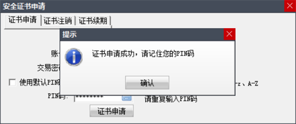 (4)证书申请成功后,回主登录界面,输入账号、密码、PIN码进行登录。
