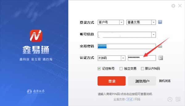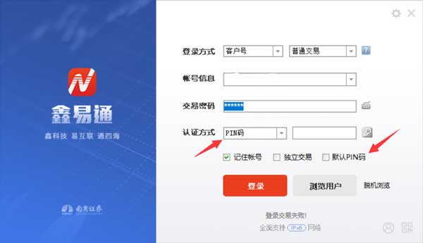 (1)输入账号、密码,认证方式是“PIN码”且不勾选“默认PIN码”。