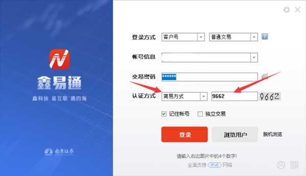 (1)输入账号、密码,认证方式选择“简易方式”,右侧输入数字验证码后点击“登录”。