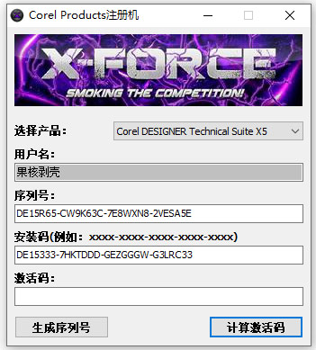 6、安装完成后,打开会声会影X5注册机,选择对应的产品,得到产品序列号;